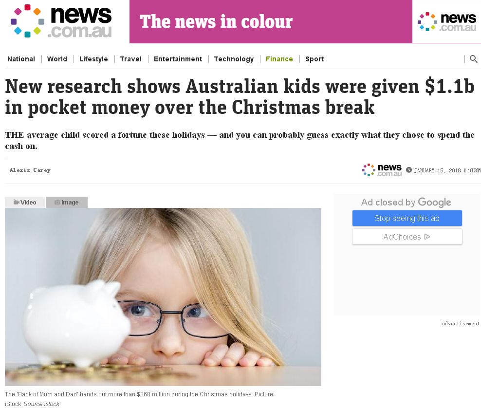 不管你相不相信,澳洲小孩在一个暑假里面的收入高达11亿元(澳元,下同),而这其中超过3.68亿澳元是来自父母给的零花钱。根据澳洲联邦银行的数据显示,澳洲5至17岁的小孩子在暑假里可谓是“赚得盆满钵满”