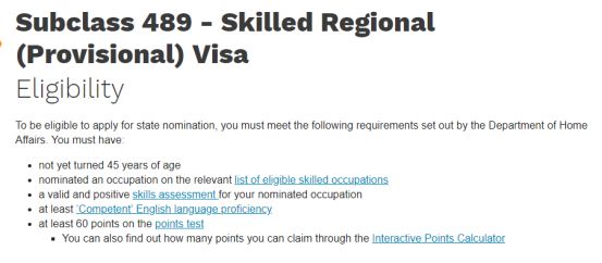 什么是489? 489是一个四年,可无限往返的,临时工作签证;在四年中需要在偏远地区住满两年,在此两年中有一年的全职工作(任何工作),或者是几份工作累计成35小时/周,就可以在两年后转成887的PR,此类887签证与一般的PR(例如189 PR)没有区别。 489有什么要求? 首先申请者需要有自己的职业评估,满足EOI自有分数50分,年龄在45岁之下和雅思四个6. 以塔斯马尼亚州为例, 有四个不同的渠道可以申请489。