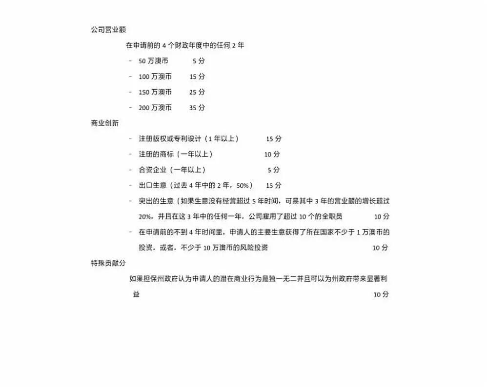 3.可独资创业或投资合作企业;若投资非个人独资生意,需持股30%以上,从指定投资方处获得的投资额度不低于20万澳币;向指定投资方提交一个可行度高的商业计划书,描述在澳洲建立企业的详细情况。