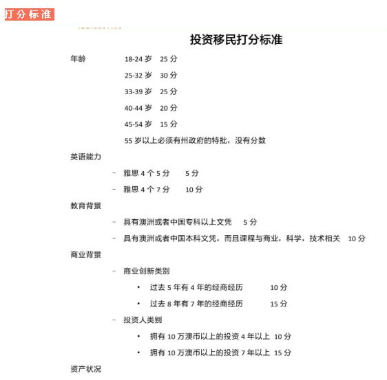 总的来说,188ABE类适合一般的申请人,有成功的经营投资经验,并且对自己的英语水平比较自信的人。和技术移民一样,需要参与打分。(188E无需打分,但英语要求是硬指标。)