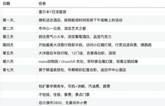 当日行程安排(已按时间顺序排列,澳洲有工作人员陪同):
