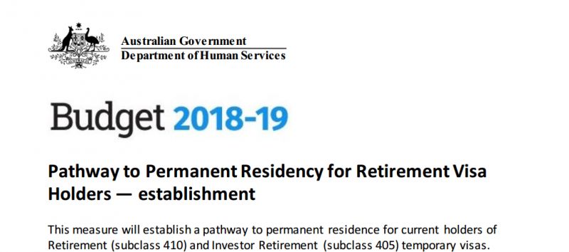 1. 移民局在此前的文件中,提示会在父母移民143类中引入一个以退休签证持有人的长期投资替代子女担保,由此所有的退休签证持有人,可申请永久居民。